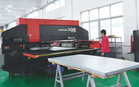 生產(chǎn)設(shè)備:德國、芬蘭和日本進(jìn)口的數(shù)控加工設(shè)備、全自動靜電噴涂生產(chǎn)線、鈑金加工設(shè)備、機(jī)械加工中心